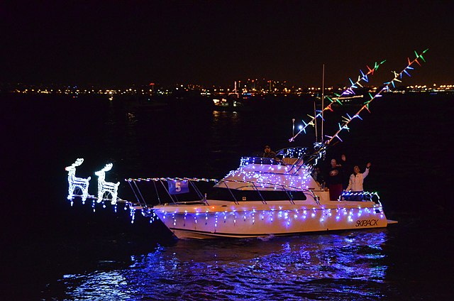 in anteprima, barche illuminate durante la parata natalizia a San Diego – autore Porto di San Diego – 2012 San Diego Bay Parade of Lights – 8261644915.jpg – Wikimedia Commons
