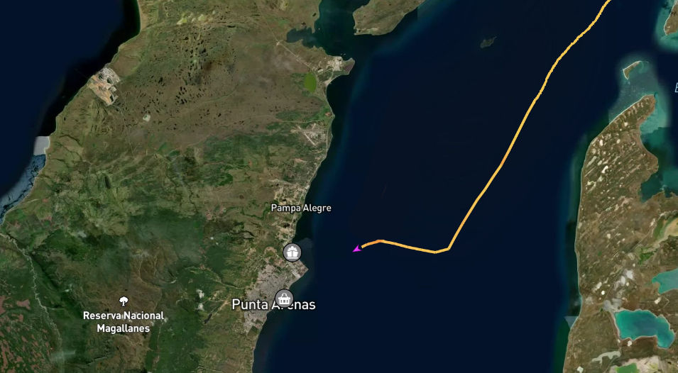 Finalmente il Vespucci si sta inoltrando nello Stretto di Magellano per raggiungere Punta Arenas (Cile), un canale, lungo circa 270 miglia, sotto la sovranità del Cile dove, a circa metà del suo tragitto, si trova il porto di Punta Arenas nostra prossima destinazione. È un percorso navigabile fra il continente del Sud America (a Nord) e la Terra del Fuoco (a Sud) e costituisce un passaggio naturale tra l’Oceano Pacifico e l’Oceano Atlantico, in alternativa al Canale di Beagle (interno all’arcipelago della Terra del Fuoco) ed al Canale di Drake (il tratto di oceano tra Capo Horn e l’Antartide notoriamente molto turbolento). Il passaggio è comunque considerato una rotta impegnativa per i forti venti, le correnti marine e per la ristrettezza dei passaggi.