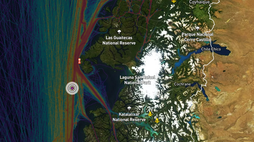 Il Vespucci ha lasciato Punta Arenas per navigare nel secondo tratto dello Stretto di Magellano e dirigere verso il Pacifico con destinazione Valparaiso (Cile). A Ferdinando Magellano 1 ci vollero circa 37 giorni (dal 21 ottobre al 28 novembre del 1520) tra imprevisti, soste e difficoltà, per raggiungere il Mar del Sud, poi proprio da lui stesso rinominato “Pacifico”. Nella “Relazione del Primo Viaggio Attorno al Mondo” di Antonio Pigafetta, compare la prima rappresentazione dello stretto; la mappa deve essere vista capovolta, dato che è disegnata con il Sud in alto, come la maggior parte della cartografia di quel tempo.