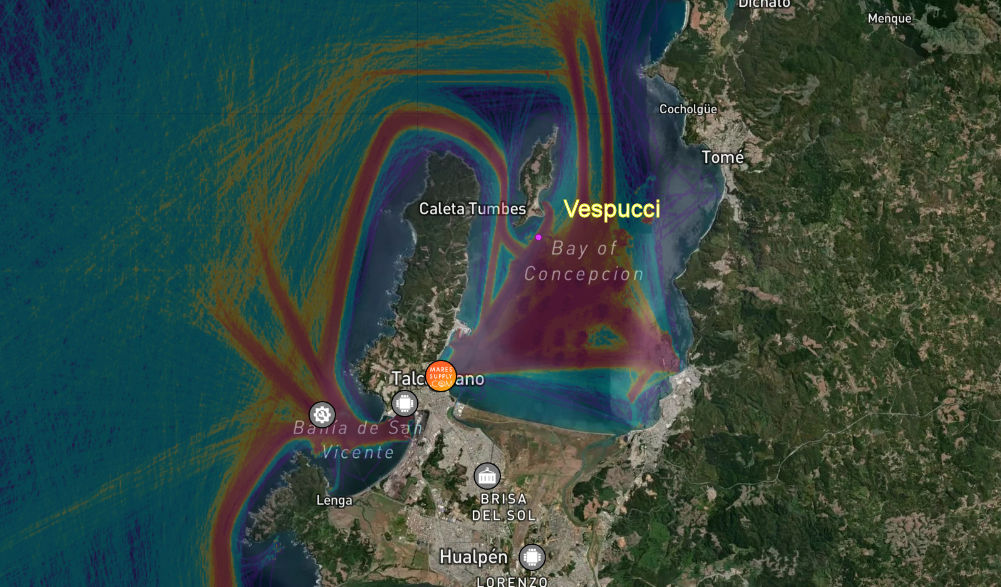 Nave Vespucci si trova alla fonda nella Baia di Concepción, una baia naturale sulla costa della regione del Bío Bío del Cile. Concepcion è una delle città più antiche del Paese. Fu fondata nel 1550 dal conquistatore spagnolo Pedro de Valdivia, che la chiamò così dopo essersi affidato alla Vergine dell’Immacolata Concezione, al fine di vincere la guerra d’Arauco e conquistare il Cile. All’interno della sua baia si trovano molti dei porti più importanti della regione e del paese, tra cui Talcahuano.