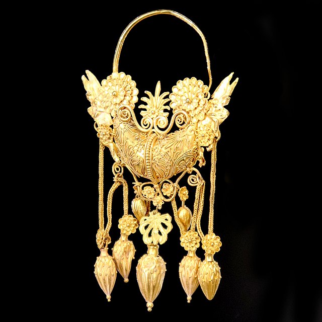 in anteprima, orecchino a forma di barca in oro ritrovato a Taranto in Via Umbria nel 1958. Seconda metà del IV secolo a.C. MArTA, inv. 110090 – Autore Fabien Bièvre-Perrin