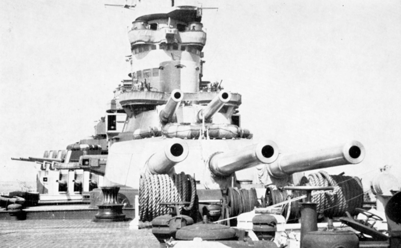 la linea elegante e pulita delle torri trinate da 381/50 – da “La Regia Marina Italiana: artiglieria e tiro navale 1 e 2 guerra mondiale: scelte tecnologia e aspetti industriali ” di Giancarlo Poddighe