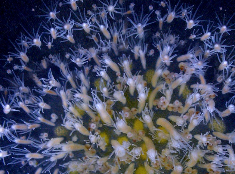 Le cellule staminali che guidano la rigenerazione di Hydractinia sono conservate nella parte inferiore del tronco del corpo dell’animale, lontano dalla bocca. Credito: Darryl Leja, NHGRI.