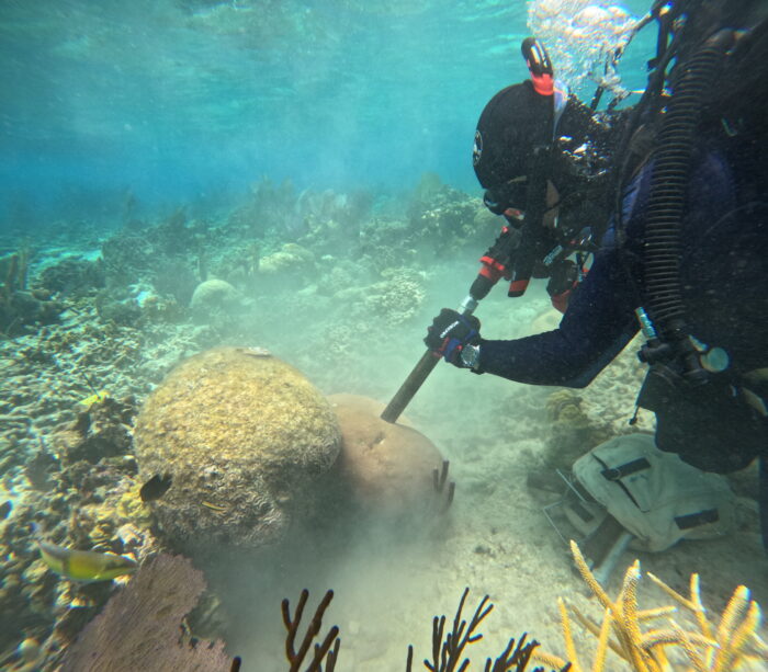 Operazione di carotaggio sui coralli – photo credit Giorgio Caramanna