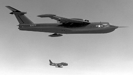 Nel 1949 la US Navy aveva trasformato il sommergibile SS-362 Guavina della classe Gato (vedi foto) in sommergibile cisterna, applicando allo scafo due controcarene laterali contenenti i serbatoi di carburante per una capacità totale di 160.000 galloni. Per agevolare le manovre di rifornimento, nel 1954 il Guavina fu dotato di una ampia piattaforma denominata “flight deck” eretta sul ponte di coperta in corrispondenza con la camera siluri poppiera. Tra il 1956 e il 1959 il Guavina fu impiegato per sperimentare le operazioni di rifornimento in mare degli idrovolanti in servizio all’epoca. La repentina cancellazione del Seamaster impedì che fossero eseguite prove di rifornimento con il nuovo idrovolante.