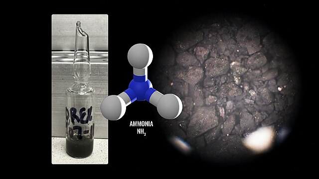 Un estratto di acqua calda da un campione di asteroide Bennu (a sinistra, chiamato “tè Bennu”) ha rivelato una sorprendente abbondanza di ammoniaca, il che indica che il materiale si è probabilmente formato in una regione fredda del sistema solare oltre l’orbita di Giove – Credito: NASA Goddard/OSIRIS-REx