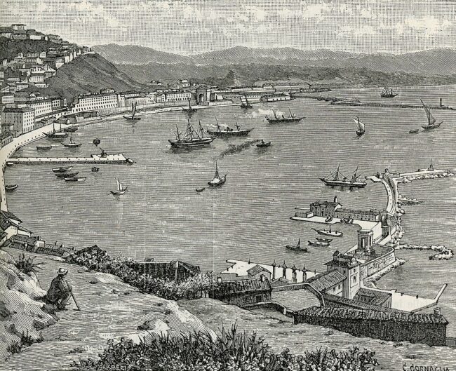in anteprima xilografia della veduta del porto di Ancona – Fonte Strafforello Gustavo, La patria, geografia dell’Italia, III. Provincie di Ancona, Ascoli Piceno, Macerata, Pesaro e Urbino. Unione Tipografico-Editrice, Torino, 1898 – Autore disegno C. Cornaglia – incisore G. Barberis Ancona veduta del porto xilografia.jpg – Wikimedia Commons