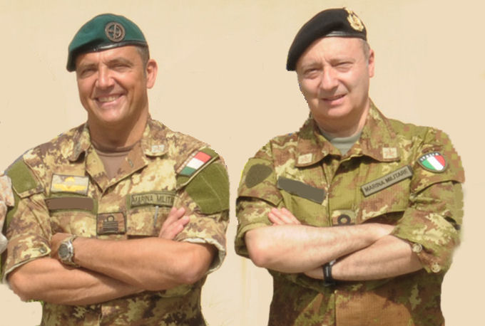 i “figli del Varignano”: eravamo una ventina di ragazzi e ragazze con in comune il lavoro dei nostri padri … la nostra vita era fra quelle mura e molti decisero di entrare nella Marina Militare (solo per citarne alcuni Bagordo, Bercini, Zaccaria, Tiscione, Viti, Pegazzano, Chionna – unico a diventare incursore – e Mucedola). Per tutti il Varignano è stata una casa ed una scuola di vita – nella foto in alto, anno 1970, Golfo della Spezia, a sinistra Andrea Mucedola ed a destra Francesco Chionna, su un vecchio MEN … in basso, Bahrain, anno 2012, il Capitano di vascello A.I. Francesco Chionna (a sn) passa il Comando del contingente italiano presso il CMF (Comando responsabile dell’antipirateria nel Golfo Arabico e nell’Indiano) al Capitano di Vascello MDS Andrea Mucedola poco dopo lo scoppio delle guerra civile tra Sciti e Sunniti in Bahrain … eravamo ambedue alla fine della nostra carriera e non poteva esserci un luogo e forse un momento migliore