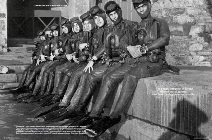 Ne ho conosciuti molti, alcuni sono stati per un breve periodo miei istruttori e mi hanno insegnato principi che, nonostante la mia carriera mi abbia portato in un’altra direzione, fanno ancora parte di me. Nella società moderna sono cambiati molti riferimenti: alla maturità dell’individuo si vuole sostituire l’appiattimento dei ruoli e la trasgressione fine a se stessa, all’onestà la furbizia, al dialogo costruttivo la ricerca spasmodica della denigrazione dello sforzo altrui. Ho ritenuto quindi un dovere parlare nuovamente di loro, con affetto e rispetto, per ricordare quegli uomini e i loro eredi, depositari di valori antichi che dovremmo ancora tornare a coltivare, perché sono l’essenza della nostra umanità. Vi anticipo che questo secondo articolo, che troverete in edicola dal 10 giugno, festa della Marina Militare, sarà presto seguito da un terzo che parlerà del relitto dello Scirè, finalmente riconosciuto come sacrario militare subacqueo anche grazie all’impegno di un amico di infanzia, anche lui un figlio del Varignano, l’ammiraglio Francesco Chionna. L’ammiraglio Chionna, dopo una carriera prestigiosa, che lo portò a comandare il COM.SUB.IN., ci racconterà ciò che con Fabio Ruberti ha portato avanti in questi ultimi anni e la lunga strada ancora da percorrere per lo Scirè e i sui eroi.
