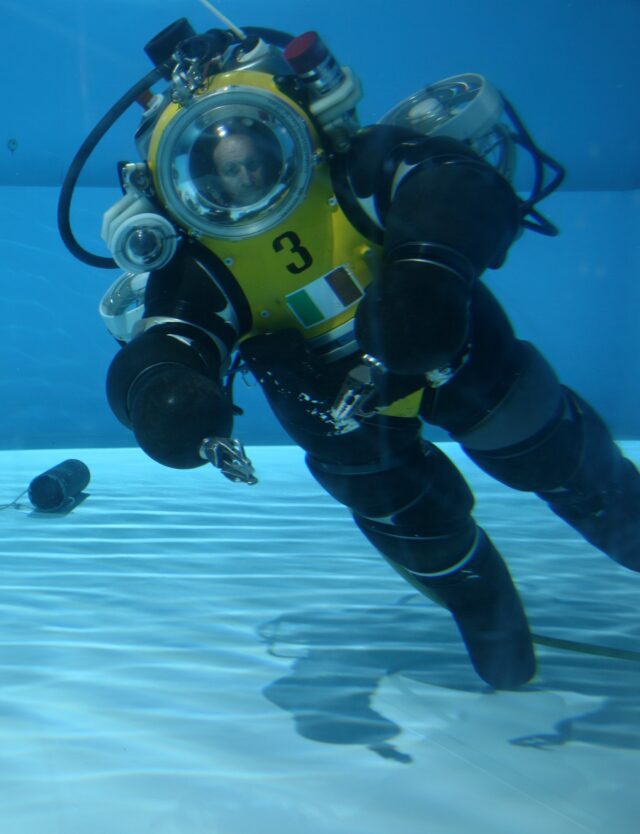 La specificità della marina militare in determinate missioni non può essere delegata. Scafandro Rigido A.D.S. (Atmospheric Diving Suit) in immersione nella vasca operativa del Comsubin.