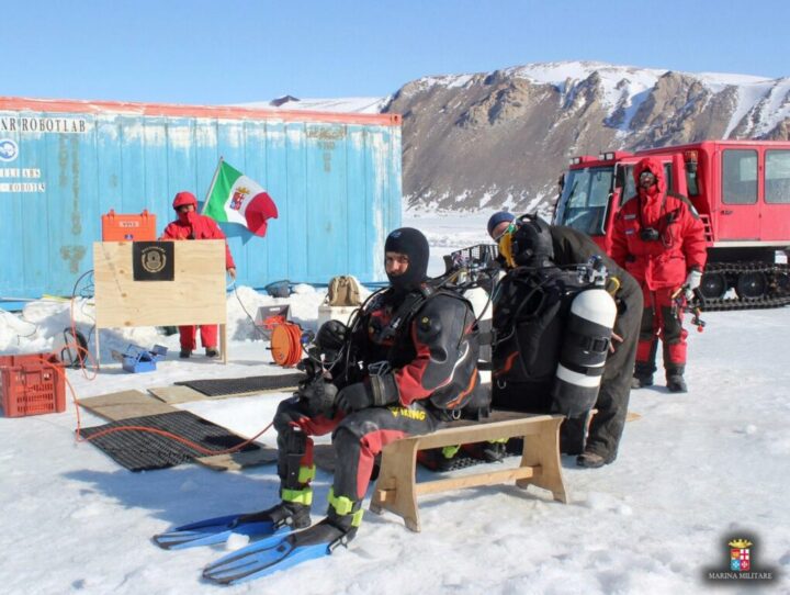 Nella base italiana “Mario Zucchelli” a Baia Terra Nova in Antartide, ha preso il via lo scorso 16 novembre la XXXI Campagna Antartica estiva 2015-2016 del Programma Nazionale di Ricerche in Antartide (PNRA). Ci sono anche due palombari della Marina Militare nella XXXI spedizione italiana in Antartide, coordinata dall’ENEA. La missione coinvolge duecento persone: ricercatori italiani e stranieri oltre ai militari di supporto. I due palombari del COMSUBIN (Comando Subacquei e Incursori della Marina Militare) supportano le attività del team scientifico sotto il ghiaccio. Il team scientifico lavora a temperature medie comprese tra 0°C e -35°C e può godere di 24 ore di luce al giorno per tutto il periodo. ANSA/UFFICIO STAMPA MARINA MILITARE