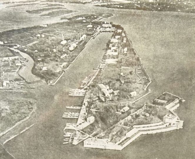 L’idroscalo delle Vignole e il forte di Sant’Andrea nel dopoguerra. In primo piano si riconoscono alcune VAS (vedette antisommergibili) e DV (Dragamine veloci). Coll. dell’autore