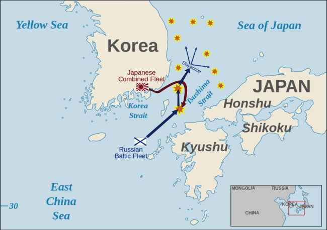 Un esempio pratico, l’opposizione alla espansione continentale zarista che ebbe un tragico epilogo nella battaglia di Tsushima quando dopo un lungo e faticoso trasferimento della flotta russa del Baltico, guidata dall’ammiraglio Nikolai Rozhestvensky, venne sconfitta nello stretto di Tsushima dall’abilità tattica giapponese, ma dopo essere stata anche fiaccata da otto estenuanti mesi di navigazione senza rifornimenti e punti di appoggio logistico, come conseguenza delle azioni diplomatiche e delle ritorsioni commerciali delle due potenze marittime anglosassoni. Di fatto la sconfitta della Russia a Tsushima segnò la fine della potenza navale zarista in Asia e nel Pacifico, consolidando la politica nipponica in Asia orientale che presentò il Giappone come potenza marittima emergente prima regionale e poi nel Pacifico. La similitudine con la politica cinese attuale è curiosa ma non troppo lontana dalla realtà.
