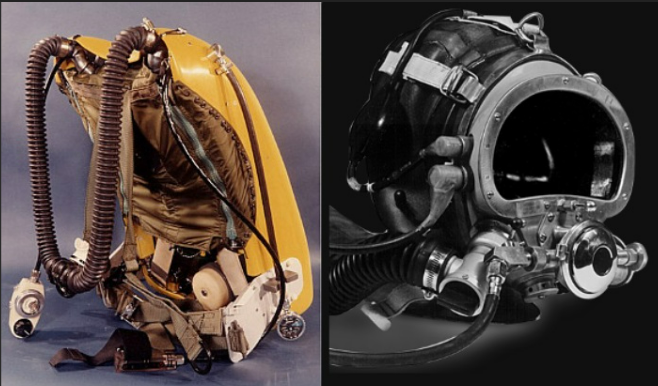3. Il rebreather MH-11 era simile all’MH-10 con l’aggiunta di un erogatore a richiesta che veniva utilizzato come sistema di respirazione di riserva. La testa del subacqueo era mantenuta asciutta dal casco Kirby.