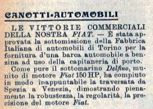 trafiletto apparso sulla Stampa che annuncia la produzione del primo motoscafo delle Capitanerie di porto da parte della Fabbrica Italiana di automobili di Torino (FIAT) – da “La stampa sportiva” n. 42/1904