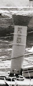 Le pirobarche, oltre che sullo scafo, dovevano portare la matricola identificativa anche sul fumaiolo – Dettaglio della pirobarca PC 63