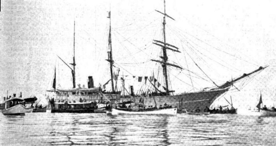 Pirobarche di svariati tipi circondano la Stella Polare del Duca degli Abruzzi al suo arrivo a La Spezia nel 1901 dopo la spedizione al Polo – Foto Conti Vecchi, La Spezia