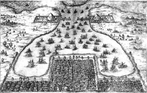 Una antica immagine topografica di Brindisi é stampata nel libro con cui si pubblicò la versione in lingua volgare del famoso libro di Giulio Cesare “I Commentari di C. Giulio Cesare” … con le figure in rame degli alloggiamenti, dé fatti d’arme, delle circonvallationi delle città e di molte altre cose notabili descritte in essi, fatte da Andrea Palladio per facilitare la cognitione dell’historia a chi legge. Gli autori: Julius Caesar; Francesco Baldelli; Andrea Palladio; Leonida Palladio; Orazio Palladio. L´editore: Appresso Pietro De’ Franceschi, Venezia M.D.LXXV [1575]