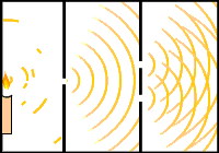 Fu il fisico Thomas Young a concepire, nel 1801, un esperimento, basato su una singola sorgente che illuminava uno schermo opaco con due fenditure parallele (poste ad una certa distanza d) di larghezza sufficientemente piccola se rapportate alla lunghezza d’onda λ della luce incidente. In questo modo, per il principio ottico di Huygens, le fenditure si trasformano in due sorgenti lineari di luce coerente che generano su uno schermo, posto a distanza L, una figura d’interferenza formata da bande alternatamente scure e luminose. Nell’animazione si vedono le due sorgenti (quadrati rossi) da cui partono due onde che, interferendo fra loro, generano sullo sfondo un’alternanza di zone illuminate e non (i punti neri sulla destra non ricevono mai luce, mentre quelli rossi hanno intensità massima). Agli inizi del Novecento, iniziarono a comparire le prime contraddizioni, in quanto in certe situazioni, come ipotizzato nel 1905 da Albert Einstein con l’ipotesi dell’esistenza del fotone nell’effetto fotoelettrico, la luce si comportava come se fosse composta da particelle. Questo creò nella fisica una situazione problematica poiché la luce sembrava presentare una sorta di dualismo, apparendo sia come onda che come particella in esperimenti diversi.