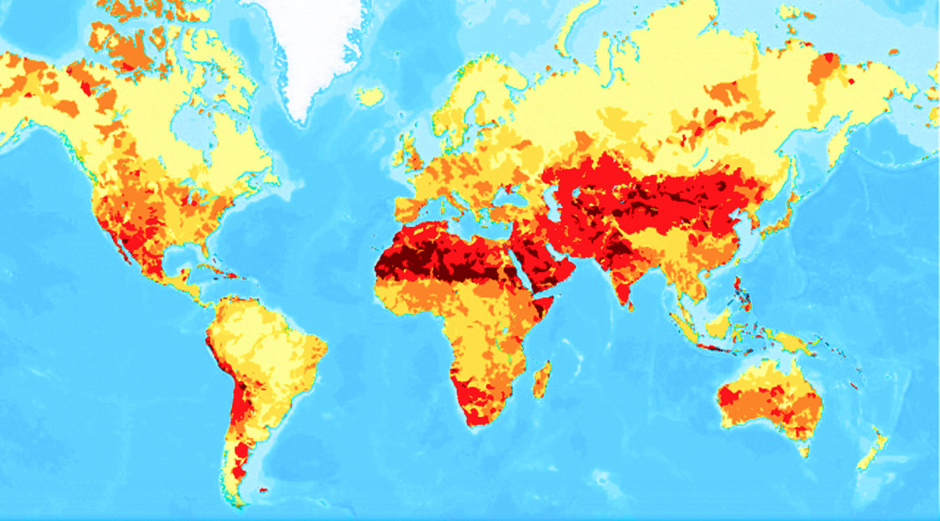 zone di siccità: i colori più accesi hanno maggiore siccità (deserti)