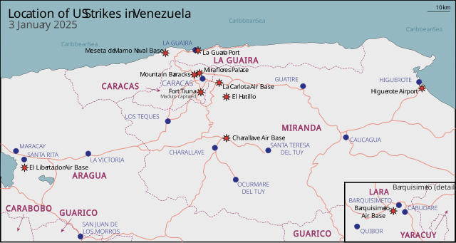 Mappa dell’attacco statunitense in Venezuela – 3 gennaio 2026 2026 Venezuela strikes map.svg – Wikimedia Commons