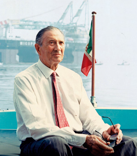 Giovanni Makaus, ufficiale in congedo di Marina pluridecorato che nel 1946 rilevò e rilanciò la Micoperi. Alle sue spalle, la Micoperi 7000, fiore all’occhiello dell’azienda. Una nave gru semi sommergibile, varata nel 1986, lunga 190 metri e larga 86, è un catamarano i cui due scafi rimangono emersi in movimento (fino a 9,5 nodi di velocità) per poi essere affondati a 27 metri in modo da poter lavorare stabilmente con mare fino a 8 – da articolo originario su Arbiter nr. 266