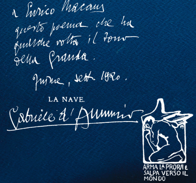 Già, erano anni in cui gli imprenditori valutavano le persone non in base ai pezzi di carta, ma alle loro qualità. Un dettaglio curioso era che i vertici aziendali erano tutti istriani, dalmati o triestini. Giovanni Makaus era nato nel 1913 sull’isola di Arbe, oggi Rab, nell’Impero austroungarico in Dalmazia, da lì la grande amicizia con Straulino, vicino di isola. L’arditismo gli scorreva nelle vene: il padre Enrico aveva partecipato all’impresa fiumana con d’Annunzio, ricevendo una copia con dedica della tragedia La nave – vedi sotto.