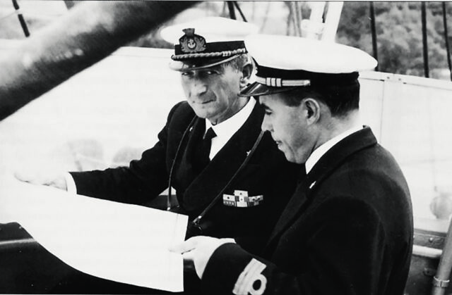 Erano gli anni in cui in ambito subacqueo nascevano anche la Cressi, la Mares e ovviamente la Technisub di Luigi Ferraro, altro incursore della Decima. Nell’Italia del boom economico e dell’innovazione tecnologica, la MICOPERI recupera le navi e ne vende il metallo: in tutte le Fiat 500 e 600 dell’epoca c’è un pò di quel ferro. Si ampliano gli orizzonti e si iniziano a stipulare contratti offshore di posa di oleodotti e di piattaforme petrolifere, uscendo dal Mediterraneo. Quei veterani erano riusciti a portare una ventata di eroismo anche in ambito civile, compiendo imprese audaci e rischiose, tanto che nei decenni ci sono scappati anche dei morti, tra sommozzatori e cavi che non hanno retto la tensione. Si trattava di personaggi decisamente fuori dal comune, esempi di uomini di cui oggi avremmo un gran bisogno. Li lasciamo raccontare a chi li ha vissuti veramente: Marco e Filippo Makaus, due dei quattro figli del fondatore Giovanni (Filippo ha anche lavorato in azienda dal ’79 al ’91, insieme al fratello Sergio). «Prima di tutto era tutta gente che non parlava di quello che aveva fatto in guerra», racconta Marco Makaus, «ma capivi che erano diversi. Ho vissuto soprattutto Straulino (nella foto sottostante a bordo del Vespucci) perché sono andato molto in barca con lui, e ho imparato poco purtroppo: poca vela e molta vita.