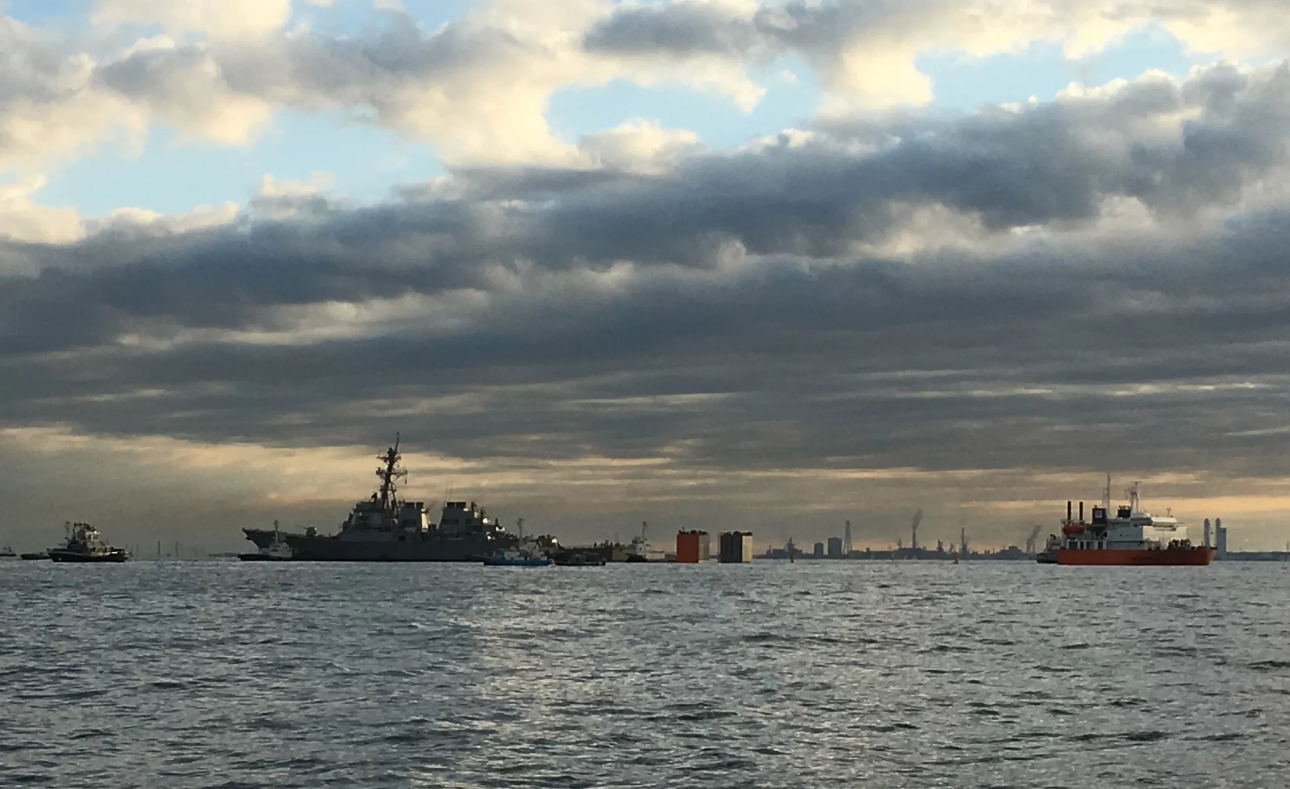 Yokusuka, Japan (June 17, 2017) The Arleigh Burke-class guided-missile destroyer USS Fitzgerald (DDG 62) returns to Fleet Activities (FLEACT) Yokosuka following a collision with a merchant vessel while operating southwest of Yokosuka, Japan. (U.S. Navy photo by Mass Communication Specialist 1st Class Peter Burghart/Released) Damaged Arleigh Burke-class guided-missile destroyer USS Fitzgerald (DDG 62) in June 2017.JPG – Wikimedia Commons