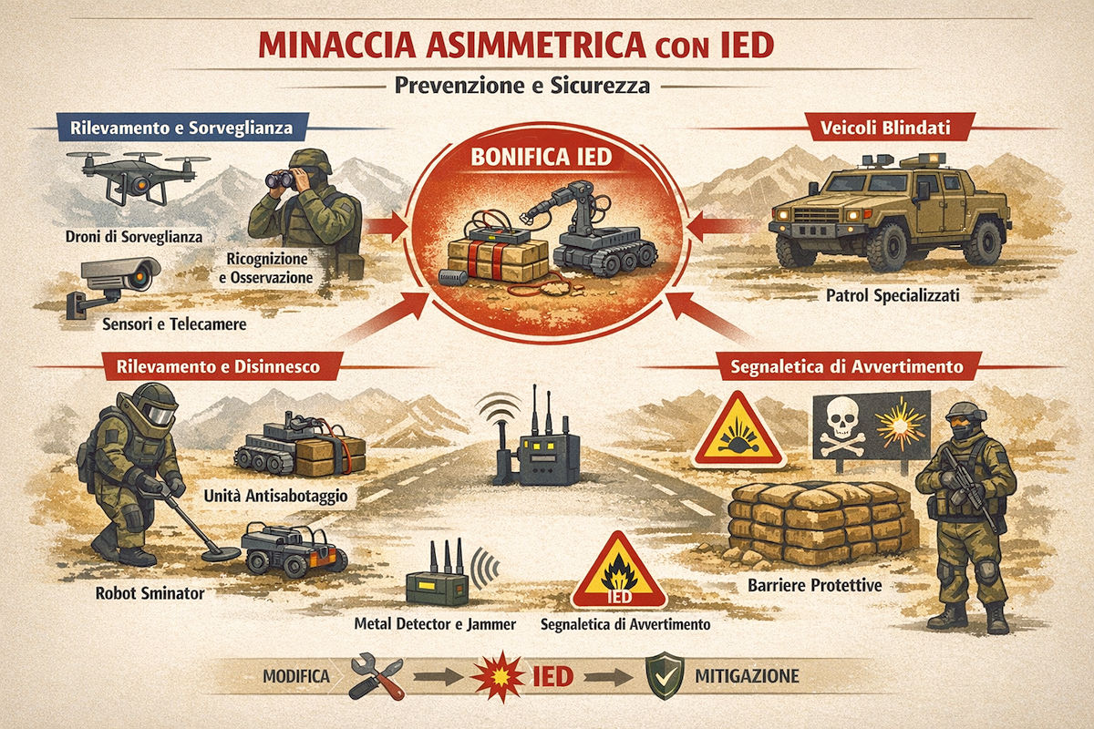 Spesso i due concetti tendono a sovrapporsi ma il loro contrasto si identifica nel dominio della Cyber-sicurezza, ovvero l’insieme di tutte quelle attività, procedure e sistemi usati per difendersi da attacchi e sabotaggi informatici (industrie, basi militari, dominio marittimo…), per proteggere i servizi essenziali (energia, trasporti, ospedali…), le infrastrutture critiche, le reti e le banche dati nonché combattere la disinformazione in rete. Più in generale, queste nuove forme di minaccia e di attacco sono attinenti alla Guerra Cibernetica (Cyber Warfare), ovvero “una forma di conflitto condotto da uno Stato, o da strutture organizzate, che utilizza attacchi informatici su larga scala per danneggiare le infrastrutture critiche, le reti o le capacità di difesa di un’altra Nazione”. Gli attori principali di queste attività sono gli hacker, esperti di informatica in grado modificare software ed hardware impiegati sia nell’InfoWar (Information Warfare), per manipolare informazioni al fine di ottenere un vantaggio strategico, utilizzando sia la propaganda mediatica che la disinformazione, resa ancora più malevola dalla possibilità di diffondere informazioni false, caotiche e contrastanti (Total Chaos Warfare). Emblematico l’impiego della rete anche per attivare sistemi esplosivi a distanza, facendo si che ogni dispositivo può diventare una potenziale arma per il nemico (ad esempio le esplosioni comandate a distanza di IED (ordigni esplosivi improvvisati) in Afghanistan e in Libano e quelle dei “cercapersone” dei miliziani Hezbollah filo-iraniani nel settembre del 2024). A questo punto la distinzione tra impiego “civile” e “militare” diviene sempre più sfuocata e la sicurezza nazionale una sfida che attraversa ogni aspetto della vita quotidiana.