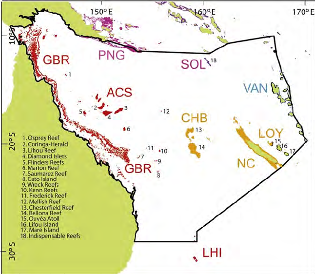 La non conoscenza del reef aveva fatto si che i Kenn Reefs (nella mappa indicata dal punto 10) erano erroneamente situati lungo un’importante rotta commerciale tra l’Australia e le colonie francesi e olandesi del Pacifico. Le carte locali erano evidentemente approssimative e, senza riferimenti particolari, finire sulle barriere era un ipotesi molto plausibile. In effetti, le fonti avevano riportato che durante il XIX secolo almeno otto navi a vela vi avevano fatto naufragio.