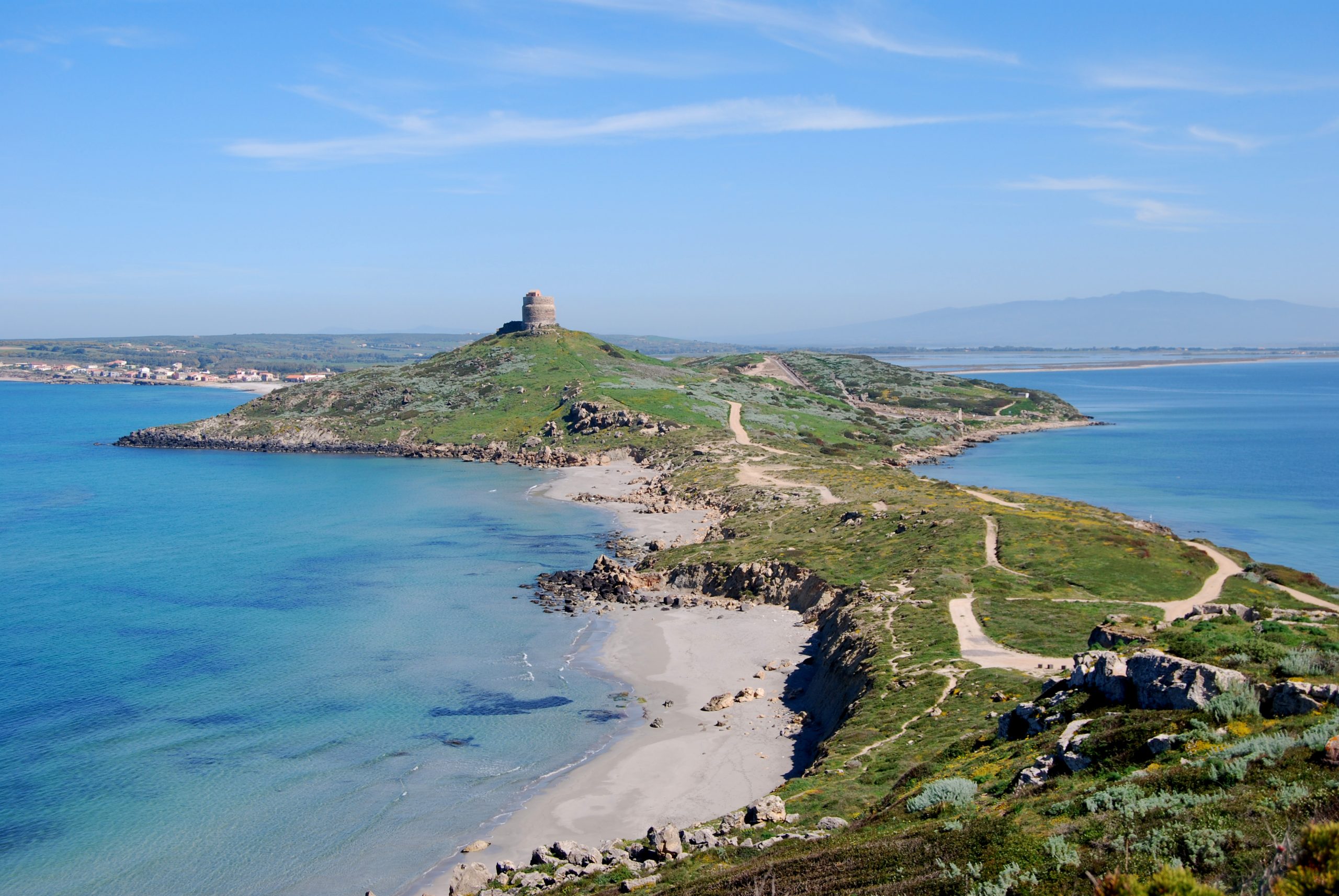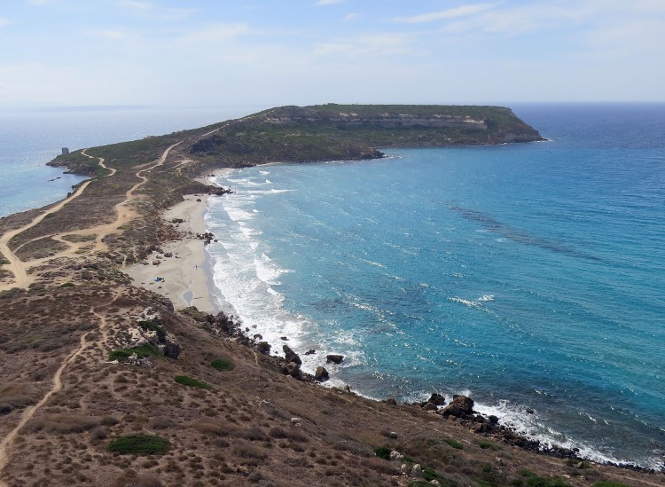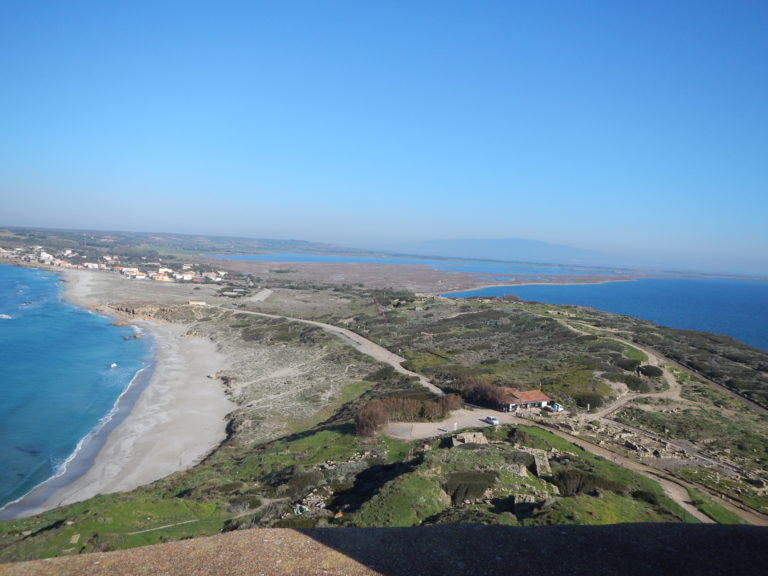 Tharros e la Penisola del Sinis: a destra il Golfo di Oristano e a sinistra il mare aperto.