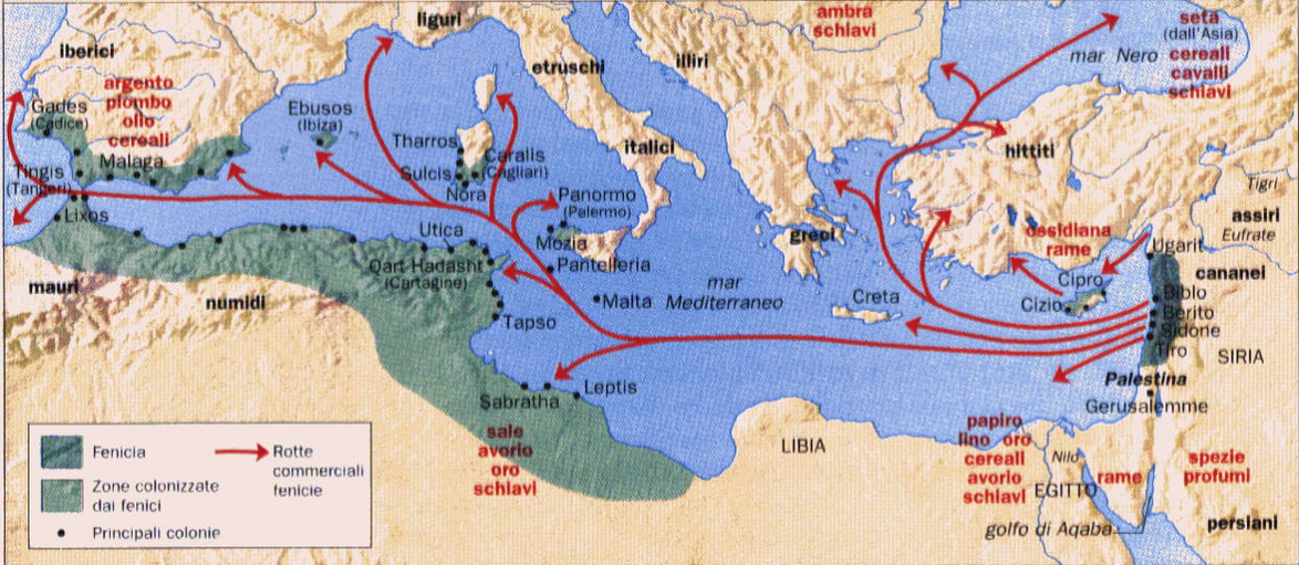 Intorno al IX secolo a.C. il Mediterraneo era già interessato da intensi scambi commerciali. Tra i protagonisti vi erano le popolazioni che provenivano da alcune città-stato dell’attuale Libano: i Fenici.