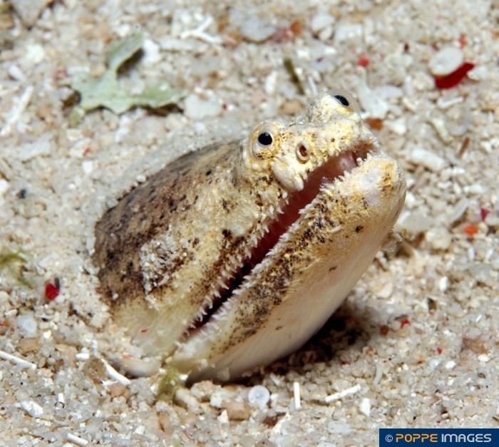 Il dottor Kenneth Tighe, biologo con il Museo Nazionale di Storia Naturale dello Smithsonian, sospetta invece che si tratti di un Atelophos chauliodus, nota anche come l’anguilla con le zanne, della famiglia degli Ophichthidae. Questa anguilla fu descritta per la prima volta da James Erwin Böhlke nel 1956 ed abita ad un intervallo di profondità tra i 30 ed i 90 metri, sia in acque marine che negli estuari salmastri tropicali. Vive in tane su una base permanente o semi permanente, lasciando esposti solo gli occhi e il muso. I maschi possono raggiungere una lunghezza totale massima di 84 cm. La sua dieta è costituita da pesci ossei e crostacei.