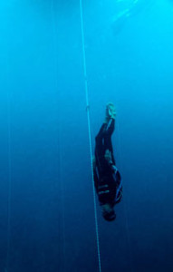 For a while AIDA kept distinctions between depth records set in sea and fresh water, and briefly between short and long pool records in the new discipline called Dynamic Apnea: Already in the 1900 Paris Olympic Games, “Under Water Swimming” had been tested but not repeated. Combining scores from both length and time achievement, Frenchman Charles de Vendeville swam 60 meters in little over a minute, and has so far been the only Olympic Freediving Champion. This makes Dynamic Apnea (in a mix with Static Apnea) the oldest form of competitive freediving. By the mid 1990’s static and dynamic disciplines saw increased attention, with a major contributor being Frenchman Andy Le Sauce, whose ultimate limits in both Static and Dynamic went unchallenged for five years across the turn of the millennium.