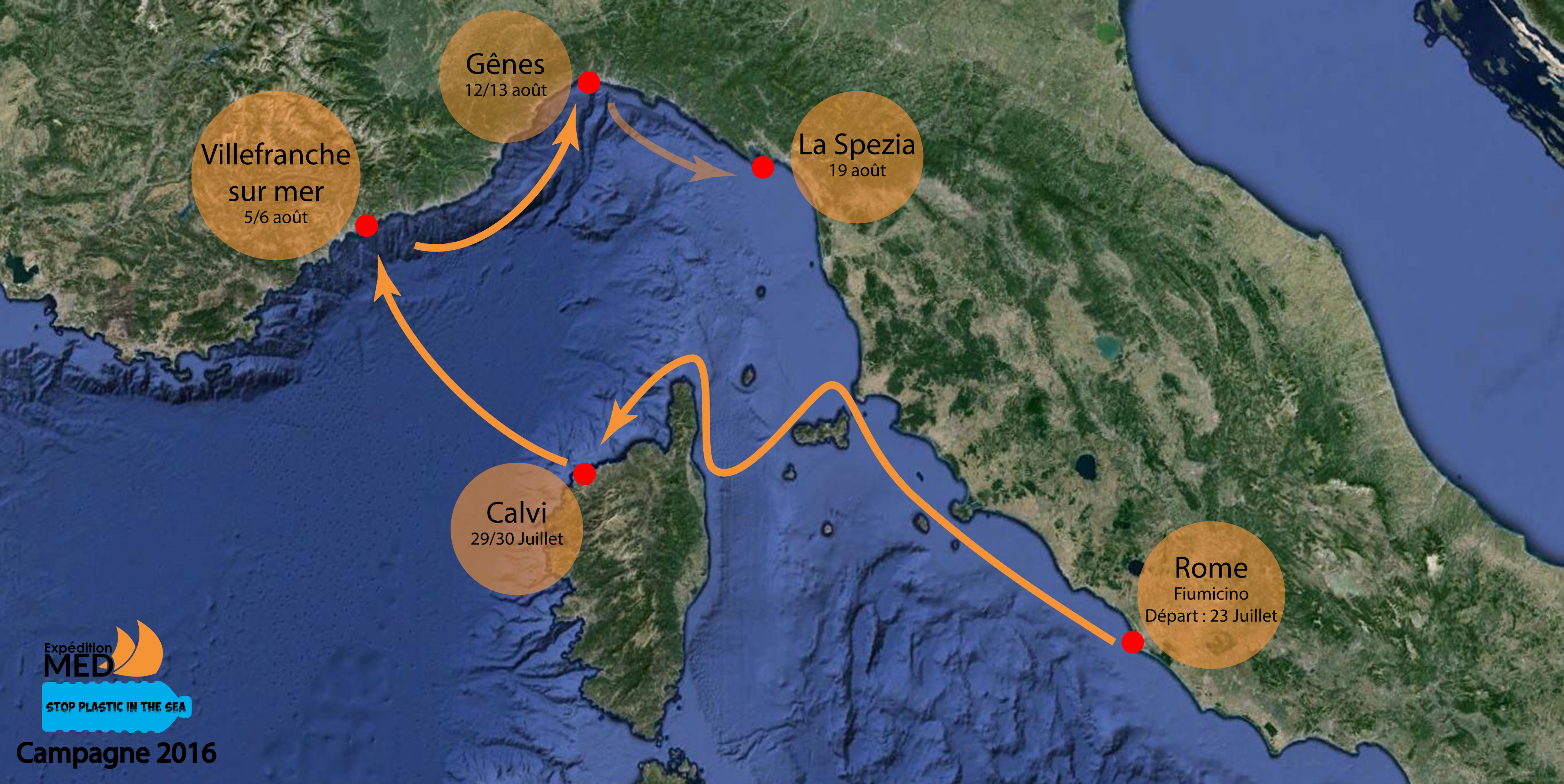 Ripetendo le misurazioni su piccola, media e grande scala, viene realizzata una cartografia specifica a fine di determinare se esistono zone di concentrazione dei frantumi, in relazione alle strutture idrologiche locali (fronti di masse d’acqua, turbini, etc.), di affinare la stima globale delle microplastiche inquinanti la superficie e di identificare le principali fonti di rifiuti verso il mare. Tra il 2010 e il 2013, l’obiettivo di Expédition MED è stato quello di perlustrare la corrente ligure-provenzale nella zona franco-italiana, inglobandovi la Corsica. Poi, nel 2014, il perimetro del bacino occidentale è stato campionato nel suo insieme. Negli anni a seguire sono proseguiti i prelievi nel bacino Ligure per valutare le variazioni nel tempo delle concentrazioni.