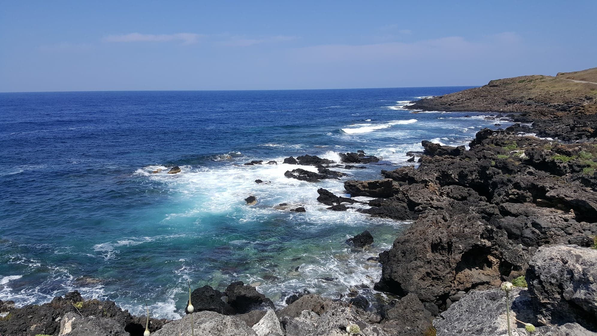 Il paesaggio marino ha un fascino arricchito dalla limpidezza dell’acqua e dalle sfumature verdi e blu su cui contrasta il nero delle nuvole di castagnole. Dal cappello ci si porta verso il ciglio, dove si formano da un lato pareti a picco e dall’altro una frana di grandi massi con qualche parete degradante verso profondità di circa 25/30 metri.