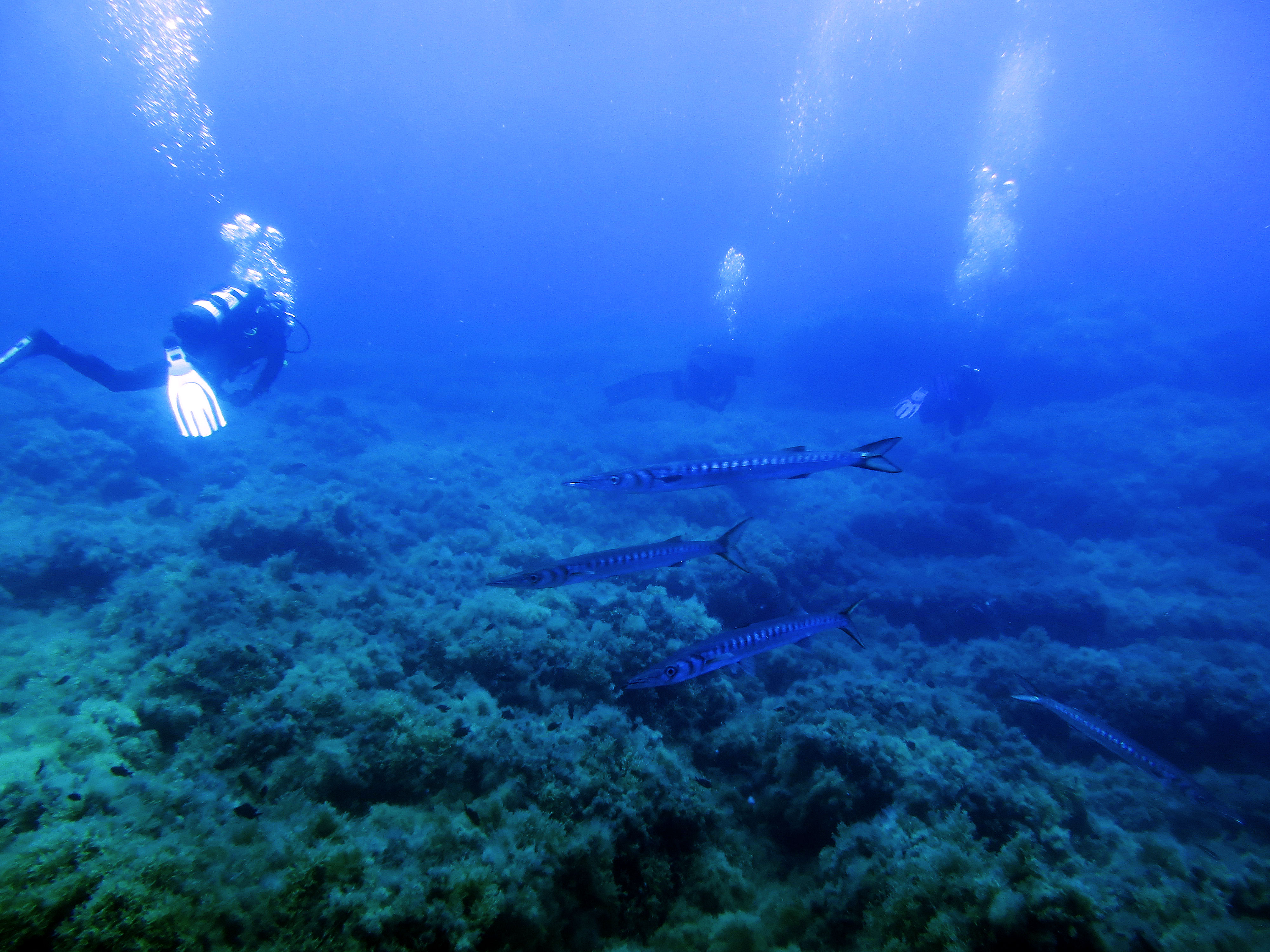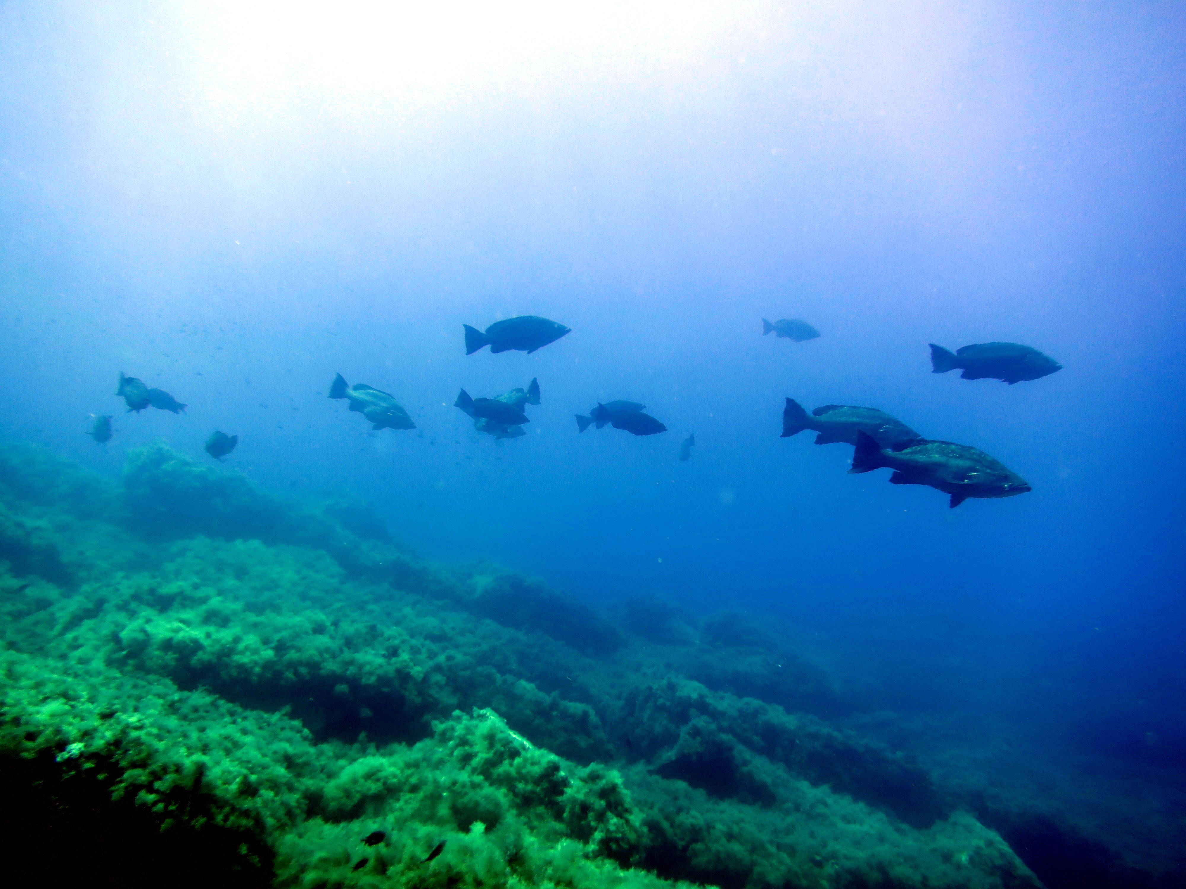 L’aspettativa di osservare barracuda, cernie e ricciole di grossa taglia non è stata vana. Abbondanti le cernie di ogni taglia, con cernie brune, rosse, oltre a qualche esemplare di grandi dimensioni di cernia dorata. Non mancano banchi di salpe, boghe e saraghi fasciati, in un tripudio di specie marine che offrono il vero sapore di un’immersione mediterranea. L’immersione si svolge partendo da un percorso esterno in senso orario, verso il faraglione sommerso, dove si incontrano i grandi pesci.