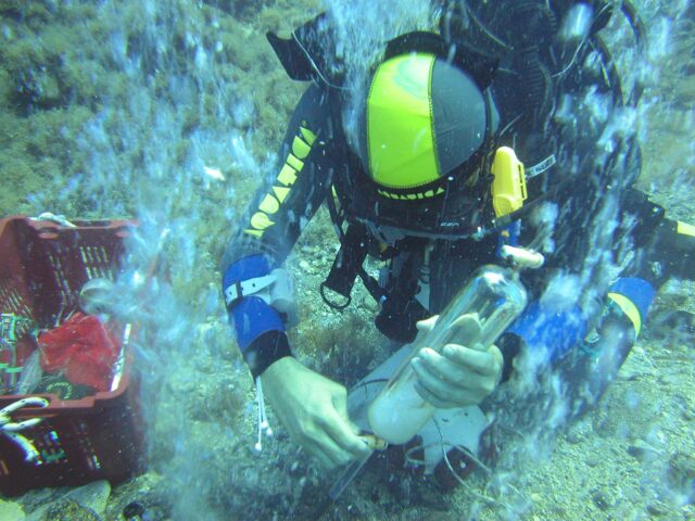 Cercare di prevedere le conseguenze della continua riduzione del pH dei mari non è facile, modelli matematici possono aiutare ma gli scienziati hanno bisogno di dati sperimentali per validarne gli algoritmi. Fortunatamente esistono dei luoghi dove, per cause del tutto naturali, la concentrazione di CO2 nell’acqua è molto elevata causando un forte riduzione del pH. In queste aree la CO2 è emessa dal fondale attraverso una serie di fratture nella roccia. L’origine del gas è quasi sempre vulcanica. Una delle aree che più si prestano ad essere usate come laboratorio naturale è quella a ridosso dell’isola di Panarea, nelle Eolie. Qui emissioni gassose e liquide fuoriescono a modesta profondità creando un ambiente caratterizzato da forti riduzioni del pH (in alcuni casi i fluidi emessi sono molto acidi con pH attorno a 3 ed abbondante presenza di CO2 sia disciolta nell’acqua che come cortine di bolle.