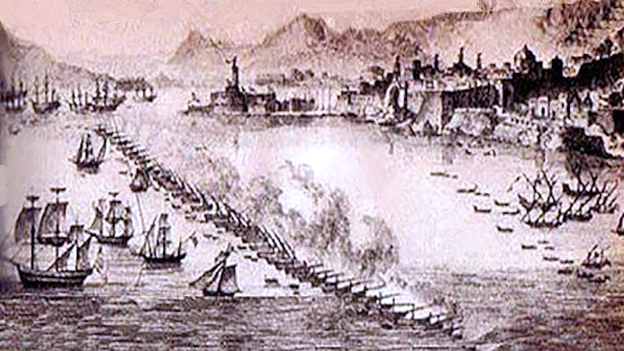 Da metà maggio la flotta inglese, approfittando del buio, si avvicinava tutte le notti alla costa e bombardava la città creando oltre al panico numerosi morti. Il 21 maggio, parte dei trenta legni da guerra – tra cui la ammiraglia di Keith, il “Minotaure”, furono affrontati da Bavastro al comando di una galea genovese accompagnata da alcune unità minori tra cui una nave che era stata regalata al Banco di San Giorgio dalla famiglia Raggio, equipaggiata con ben 115 galeotti ai 50 remi, ed armata – oltre la ciurma – di 40 granatieri liguri e sei ufficiali, e di tre soli cannoni (due da 24 libbre ed uno da 36). Lo scontro, sebbene inizialmente vittorioso, dopo l’effetto sorpresa, girò al peggio.