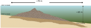 Non lontano, una città dell’età del bronzo chiamata Bet Yerah, che significa in ebraico la “casa del dio della luna“. Ma la scoperta più intrigante è avvenuta a tredici chilometri a sud-est del monumento, questa volta sotto il livello del mare. Gli scienziati scoprirono questo grande ammasso di sassi per caso, nel 2003, usando un sonar per ispezionare il fondo del lago, ma hanno pubblicato la loro scoperta solo nel 2013. La struttura è composta da rocce di basalto, disposte a forma di cono. Misura settanta metri alla base della struttura ed è alto circa nove metri su un fondale di dieci metri. Da una prima stima la struttura potrebbe pesare circa 60.000 tonnellate. Per capirci ha il doppio delle dimensioni dell’antico cerchio di pietre di Stonehenge in Inghilterra.