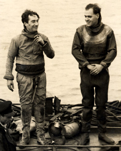 Lionel Crabb a sinistra con Ray Hodges dopo un’immersione su un sommergibile affondato nel Thames Estuary SAILORS, MARINERS & WARRIORS LEAGUE: Russian Frogman Claims He Killed Real Life British ‘James Bond’ Placing Mine On Khruschev’s Ship in UK Waters (cruelkev2.blogspot.com)