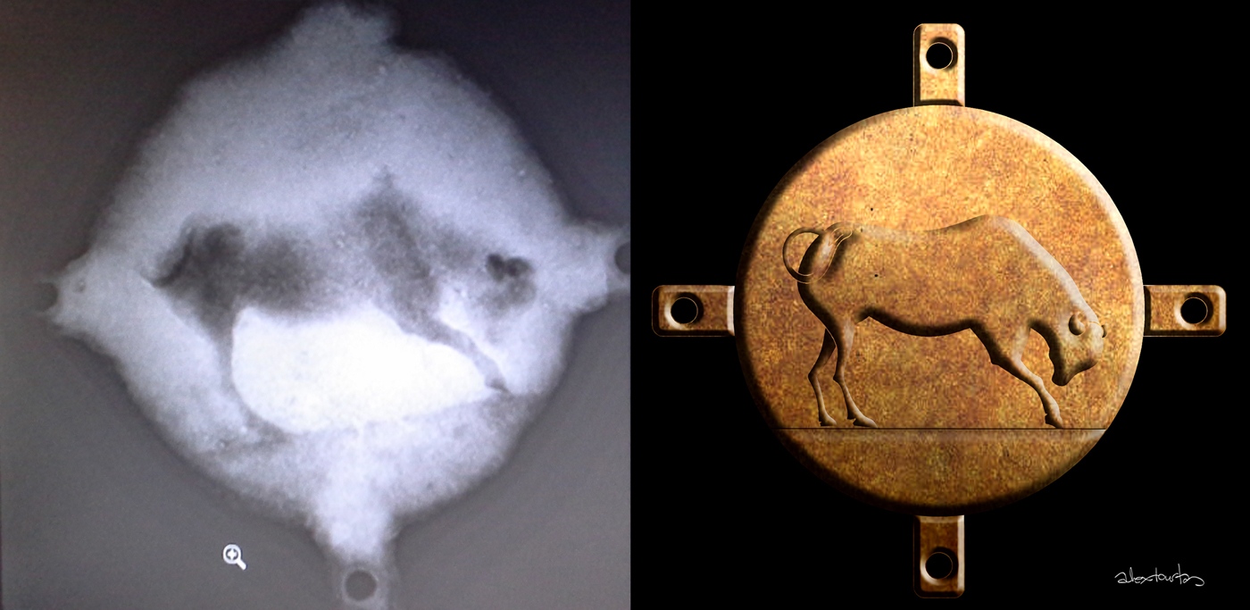 Oltre ad artefatti, frammenti di statue in bronzo ed in marmo ed un coperchio di sarcofago, gli archeologi hanno ritrovato un nuovo misterioso disco di bronzo le cui ispezioni, effettuate ai raggi X, hanno restituito l’immagine enigmatica di un toro. Faceva forse parte del meccanismo originale da cui si è distaccato?
