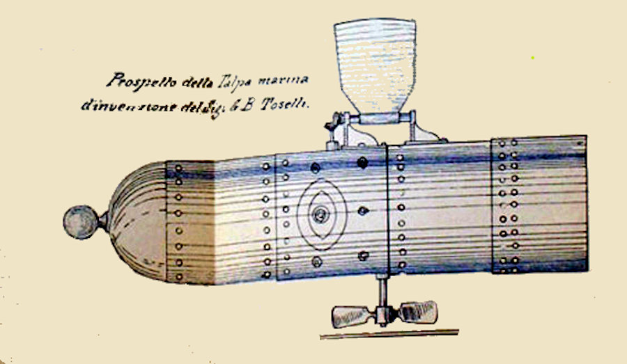 Gian Battista Toselli fu l’inventore della “Talpa Marina”, un osservatorio sottomarino di tre metri di altezza per un metro di diametro dove un uomo rinchiuso in esso poteva avere un certo grado di autonomia negli spostamenti e avere la possibilità di espletare anche una qualche attività di recupero. La Talpa è composto da un cilindro alto circa tre metri e mezzo e largo un metro. Ha un timone e una piccola elica da azionare a mano per muoversi. Nella parte superiore c’è uno scompartimento per l’aria, in quella centrale lo spazio per il pilota che può comunicare con la superficie, e nello scompartimento inferiore il deposito della zavorra, che può essere riempito o svuotato per cambiare la quota del mezzo. È uno strumento elementare ma ingegnoso. Il 24 settembre 1871 Toselli, dopo averlo testato nel mare di Villasimius, effettua una dimostrazione a Cagliari.
