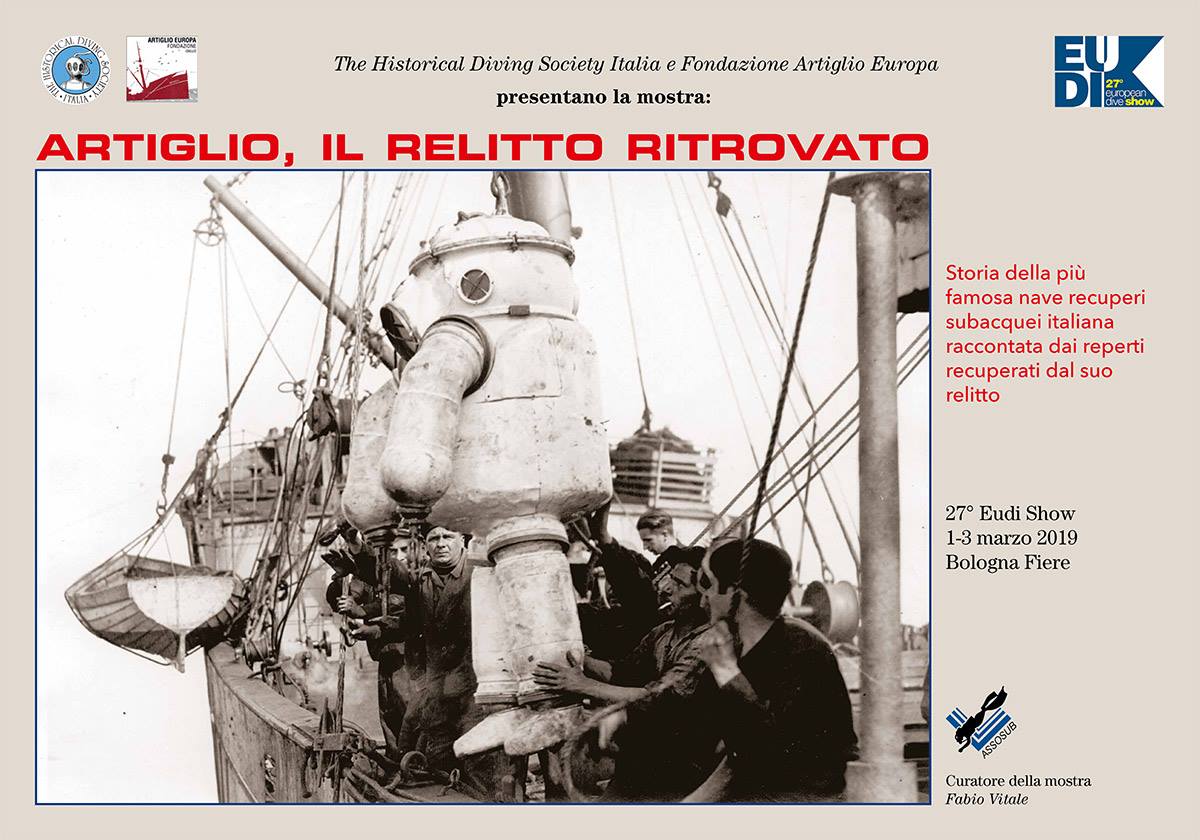 Abbiamo incontrato l’autore, Fabio Vitale, storico delle attività subacquee e scrittore, che ci ha raccontato la storia di quegli uomini, del loro coraggio, sacrificio, paura e professionalità. Grazie all’infaticabile opera e alla grande passione di Fabio Vitale, proseguendo un’ormai consolidata tradizione, anche quest’anno HDS ha presentato un’eccezionale mostra dedicata a questa celebre nave recupero, corredata dai reperti recuperati dal relitto. Una collaborazione prestigiosa tra Eudi, Assosub, Historical Diving Society Italia, la Fondazione Artiglio Europa e la Marina Militare che, attraverso il COM.SUB.IN., ha supportato la mostra con il prestito di un raro scafandro articolato Neufeldt und Kuhnke, simile a quelli utilizzati a quel tempo dalla So.Ri.Ma.