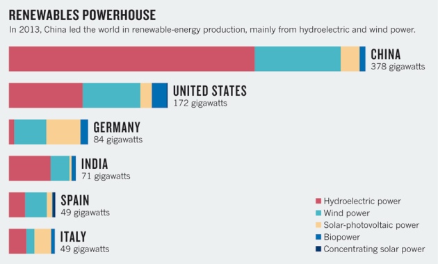 Come conseguenza dei continui massicci investimenti cinesi nelle fonti rinnovabili, la Cina è emersa come uno dei principali produttori di tecnologie eoliche e, in alcuni segmenti dell’energia solare, eolica e idroelettrica, ed è diventata anche un Paese fornitore di tecnologie innovatrici per il resto del mondo.