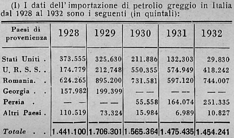 – la presenza di rilevanti giacimenti di rocce asfaltiche impegnate al 10 % di idrocarburi, specie in Abruzzo e a Ragusa, fece sperare di ottenere dai giacimenti ragusani 100000t di oli greggi (secondo la Treccani la potenzialità era doppia). In realtà nel 1941 non si andò oltre le 4500 tonnellate;