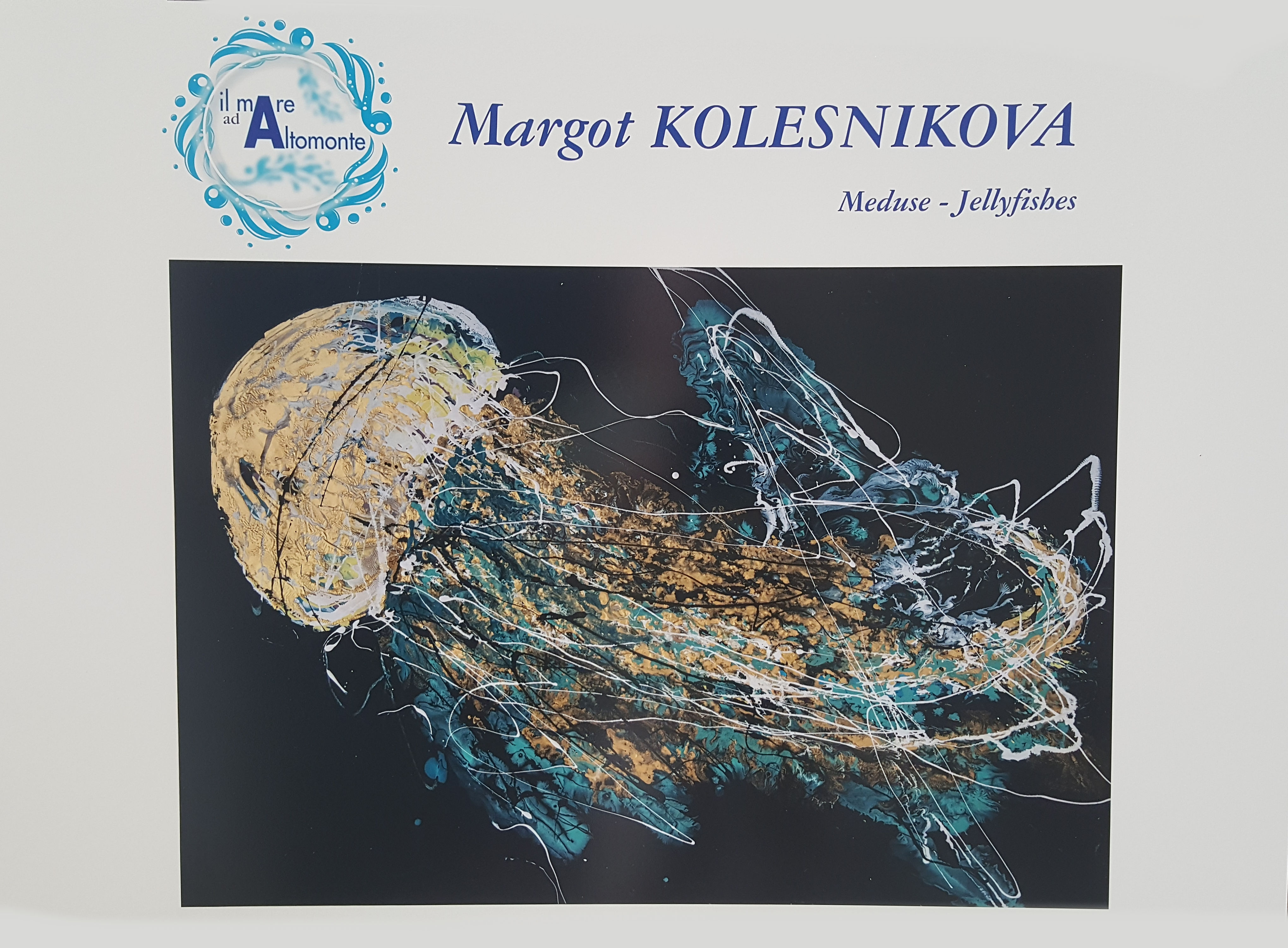 Conosciamole meglio: l’artista russa Margot Kolesnikova, reduce da una affermata esposizione a Milano incanta con le sue meduse dipinte con getti e spruzzi di colore. Per Margarita dipingere il mare, sopra e sotto, non è una sfida per tutti, è come il nostro animo, non lo si conosce mai abbastanza e si dona soltanto a chi lo rispetta e lo sa ammirare in silenzio nel suo continuo mutare.