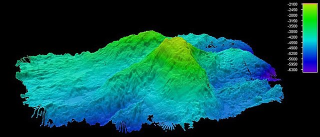 mosaico dei dati del sonar multibeam raccolti durante il Mid-Cayman Rise dall’Okeanos Explorer. La prospettiva guarda a ovest-nord-ovest e il Monte Dent è visibile in primo piano. NOAA Okeanos Explorer Program, Mid-Cayman Rise Expedition 2011 File:Map0033076781x800x800.jpg – Wikimedia Commons