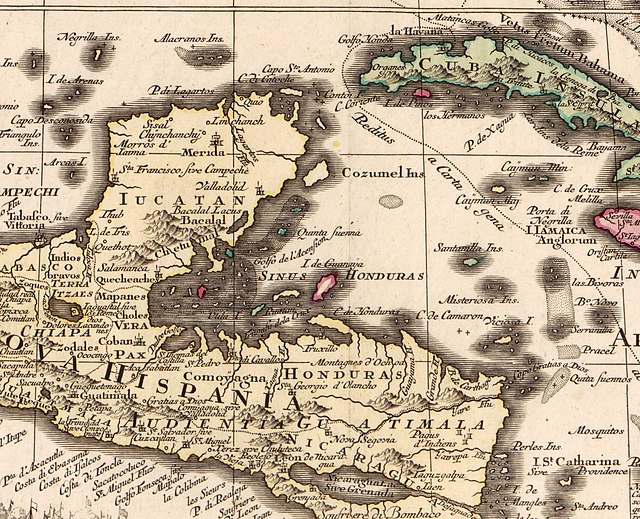 Mappa dello Yucatan, XVII secolo – Mappa geographica regionem Mexicanam et Floridam : terrasque adjacentes, ut et Anteriores Americae insulas cursus itedem et reditus navigantium versus flumen Missisipi et alias colonias ob oculas ponens Seutter, Matthaeus, 1678-1756 / Lotter, Tobias Conrad, 1717-1777